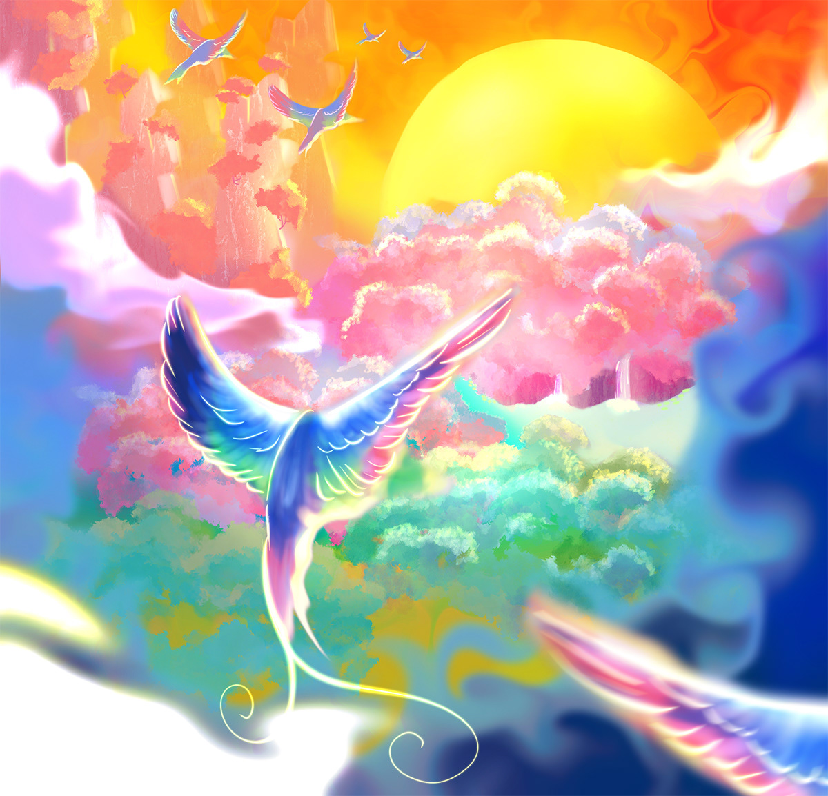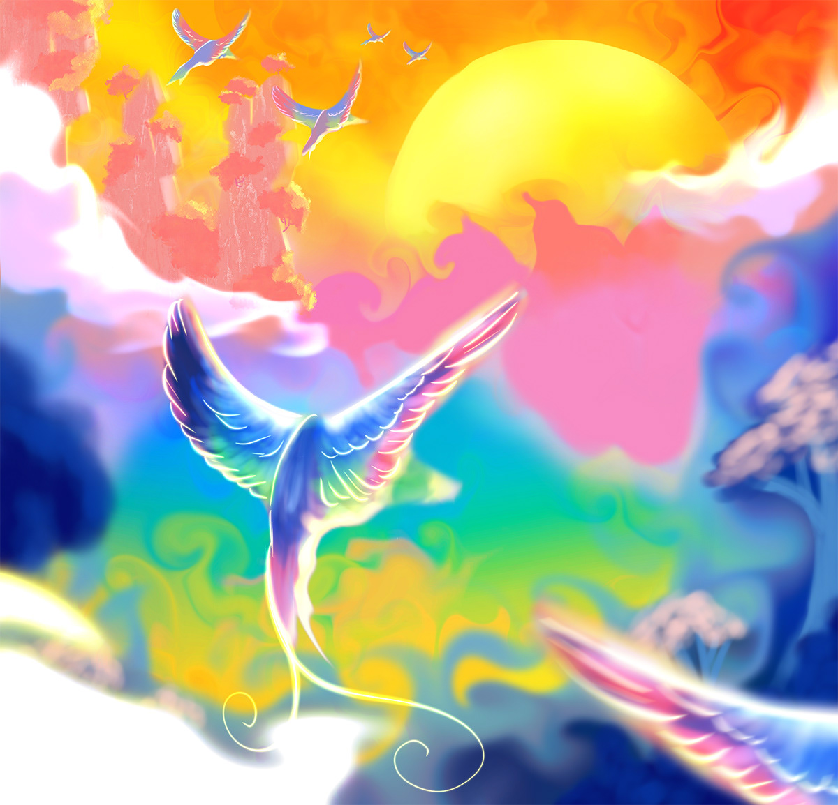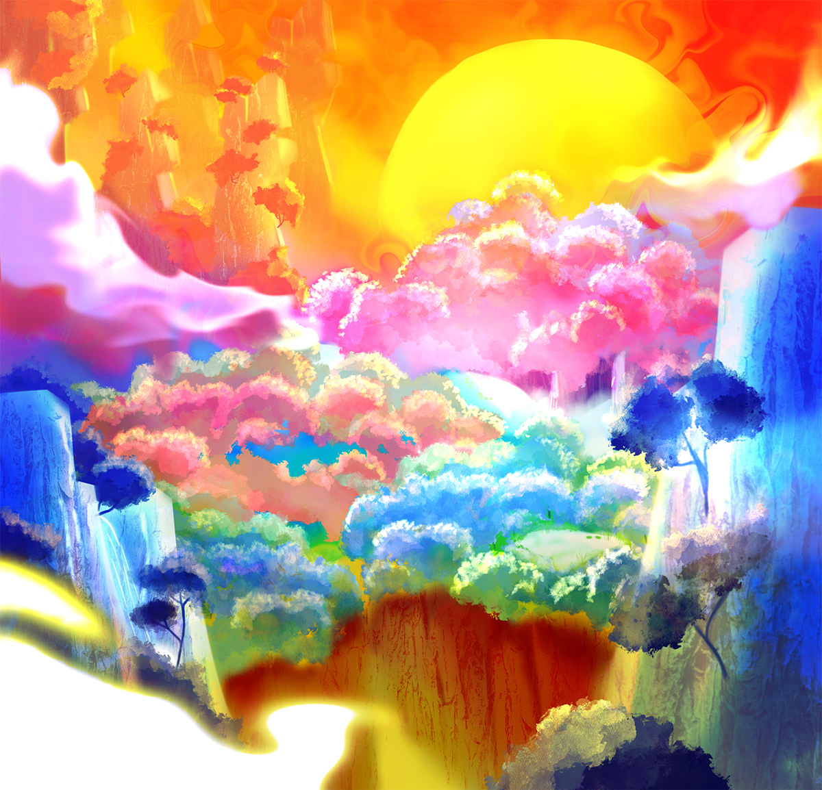 Au commencement, un fond abstrait...puis l'illustration se construit pas à pas.