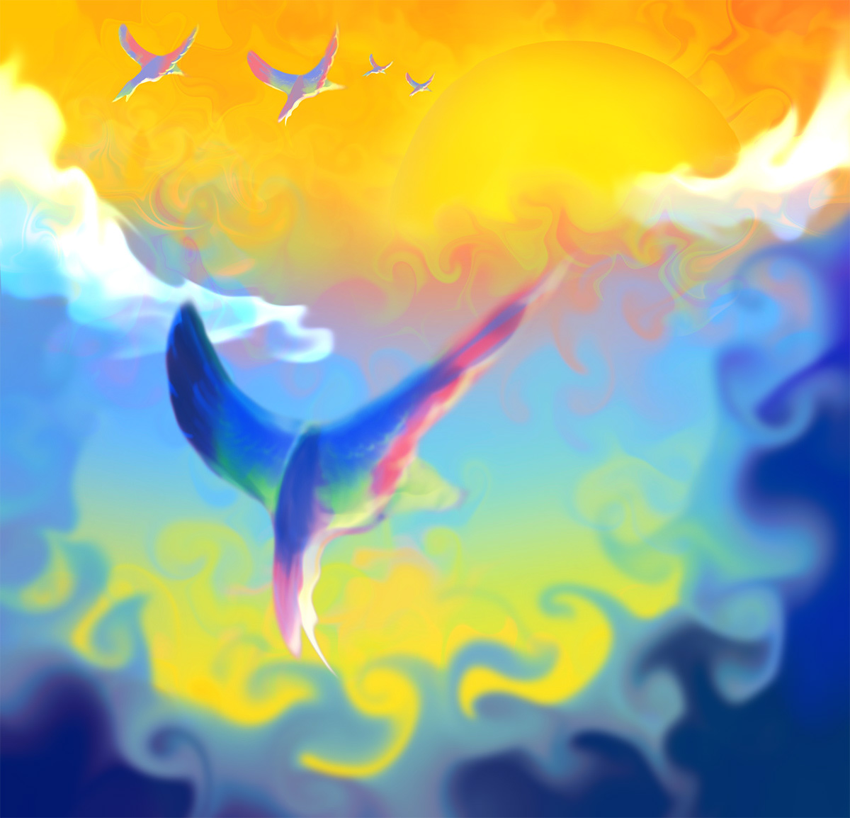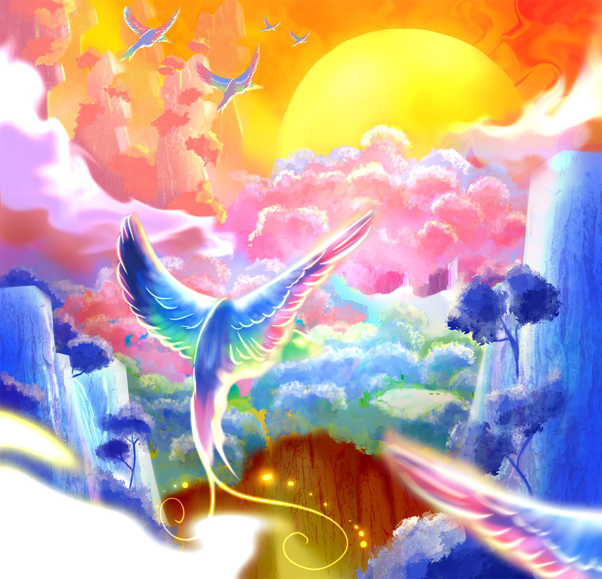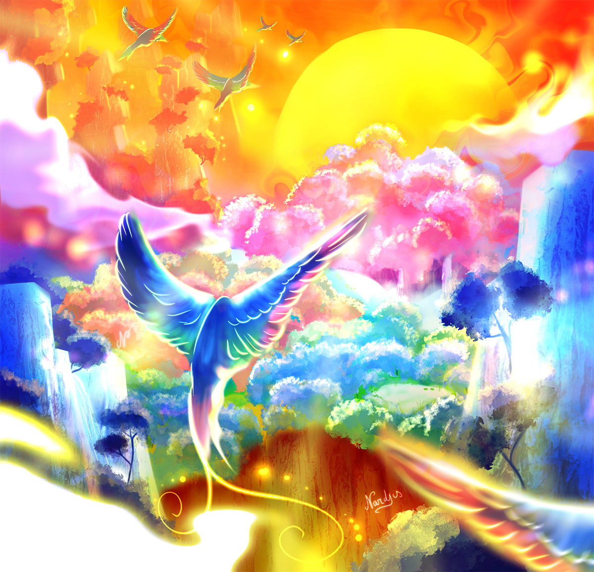Au commencement, un fond abstrait...puis l'illustration se construit pas à pas.