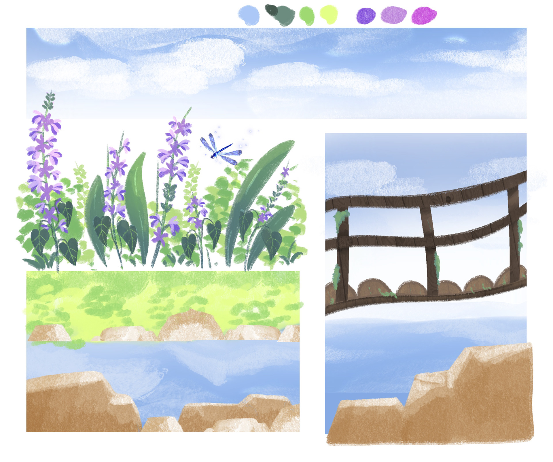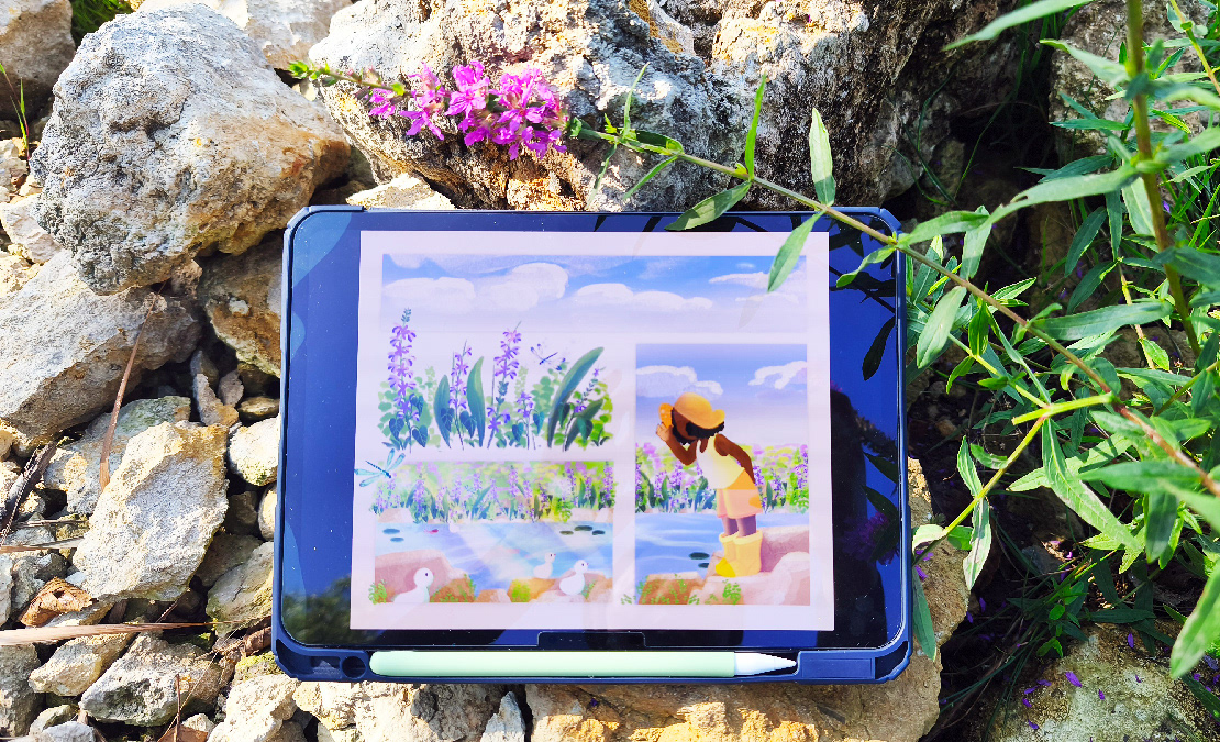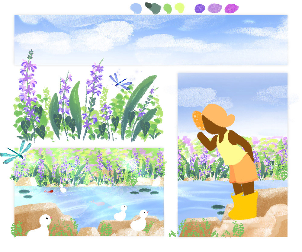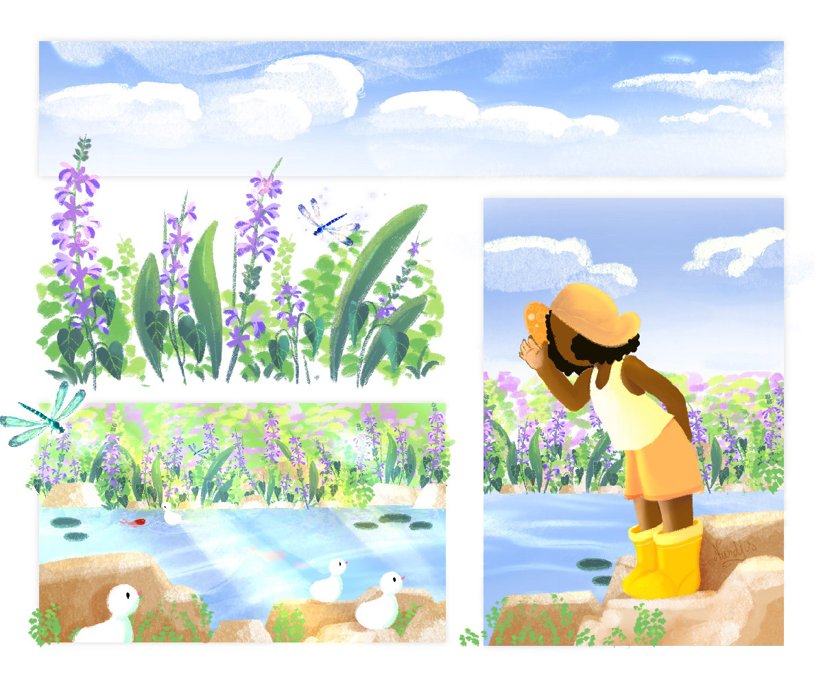 Une planche inspirée par de nombreuses balades d'été autour d'un étang.